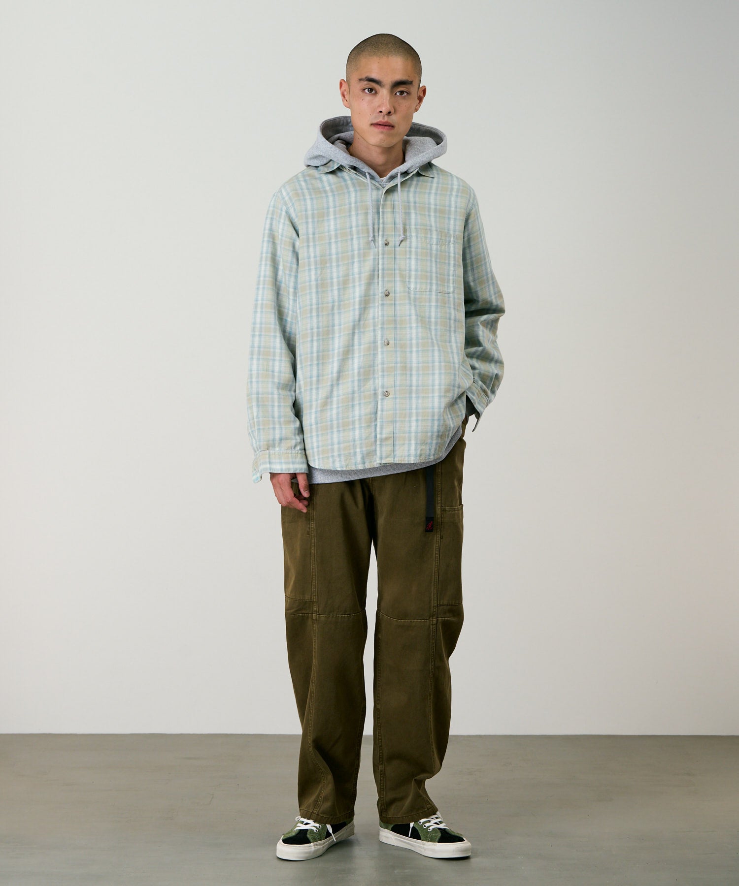 A bit more shapely than most pants on the baggier side of things, they’ve got what would probably be called a ‘balloon silhouette’, with a high waist, plenty of room in the thigh and a gentle taper. They’ve got slightly cropped hems too, so whilst they’re roomy, they don’t engulf your footwear.